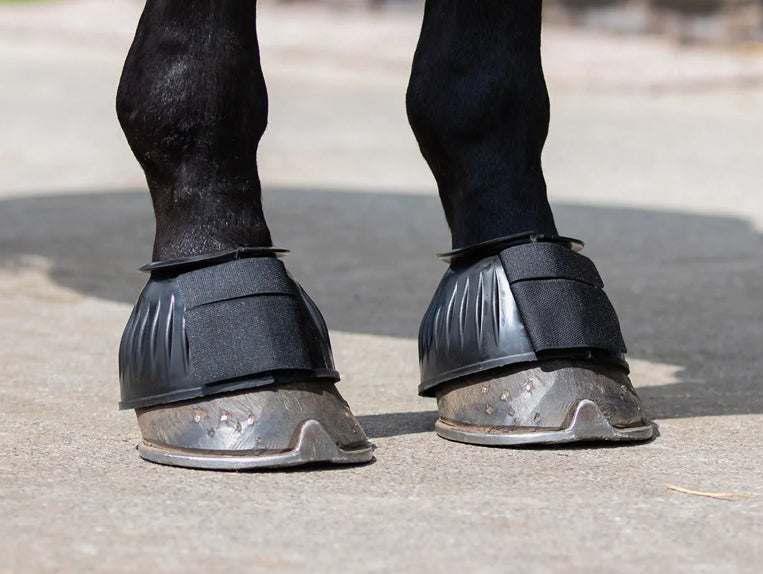 Cloches de modèle standard en caoutchouc souple. Peuvent être utilisées pour protéger les sabots des membres de devant. Avec une fermeture auto-agrippante.