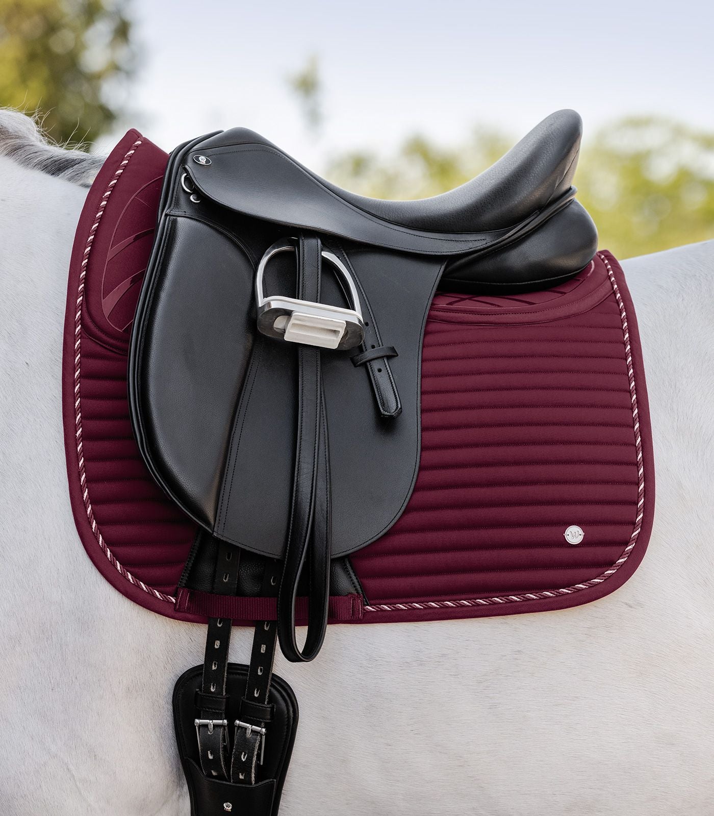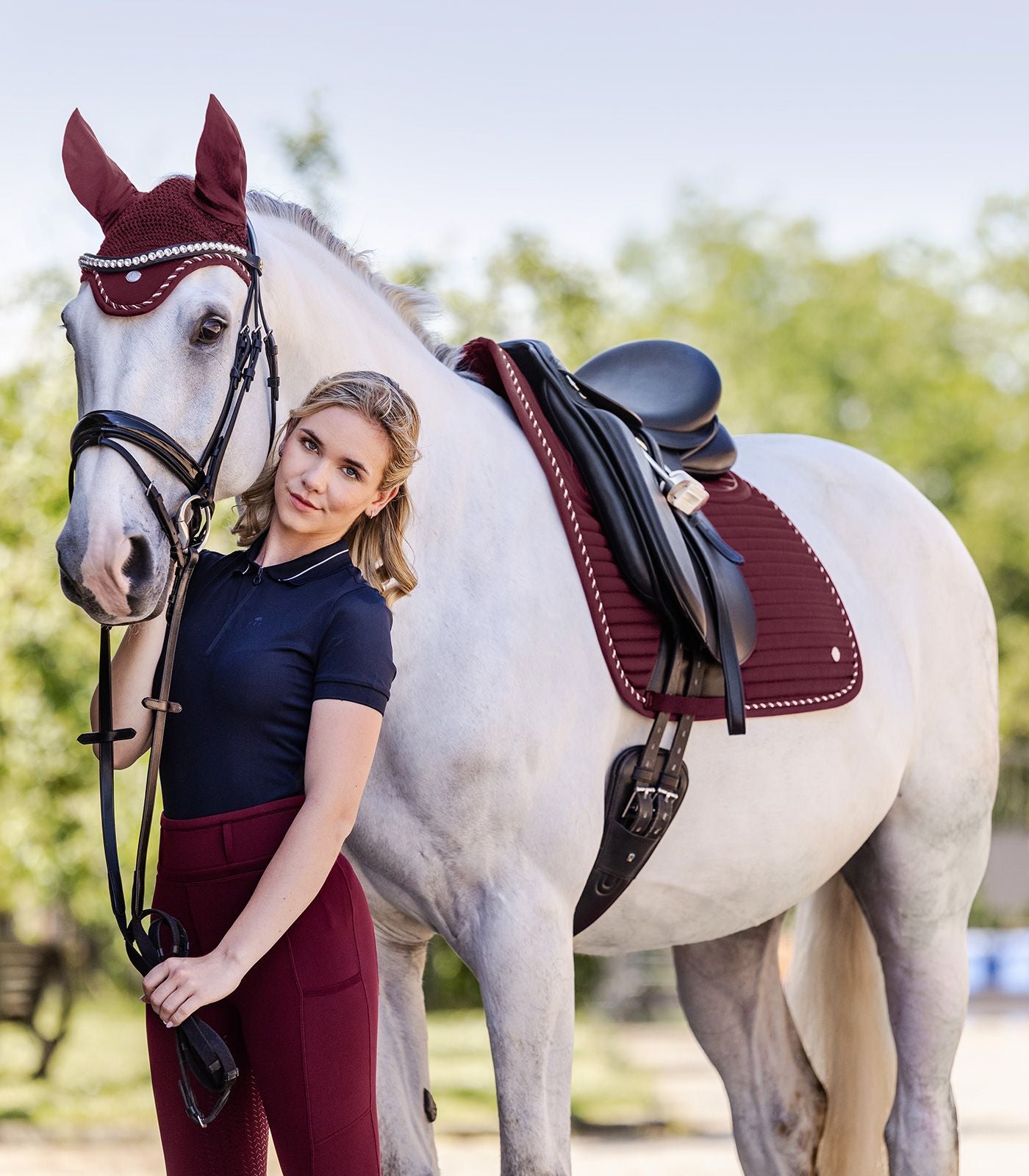 La chabraque Riga allie un confort maximal à un look sportif et élégant. Un coussin en mousse de qualité est intégré dans la selle. Il contribue à amortir les chocs et offre un grand confort au cheval. La garniture en silicone assure une prise en main optimale et empêche la selle de glisser. Équipé d"un renfort au niveau de la sangle. Un cordon décoratif et une petite plaque métallique argentée complètent le tout.